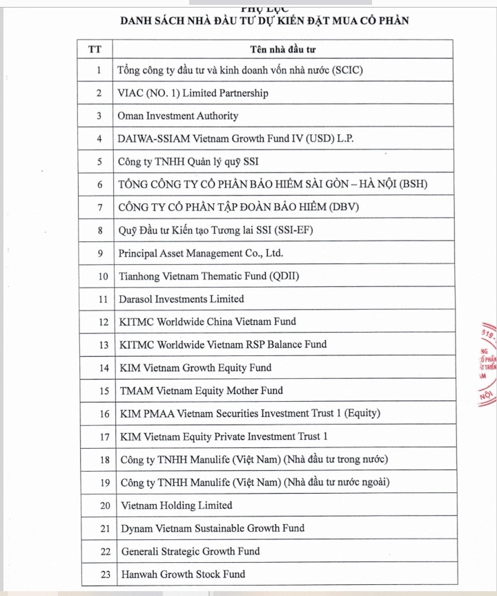 Đối tượng tham gia là 33 nhà đầu tư chứng khoán chuyên nghiệp, gồm cả tổ chức trong nước và nước ngoài. Danh sách nhà đầu tư dự kiến tham gia mua cổ phiếu của BIDV gồm nhiều tổ chức và quỹ đầu tư lớn trên thị trường như Tổng công ty Đầu tư và Kinh doanh vốn Nhà nước (SCIC), nhóm quỹ liên quan Dragon Capital, Darasol Investments Limited, KIM, SSIAM, Manulife…
